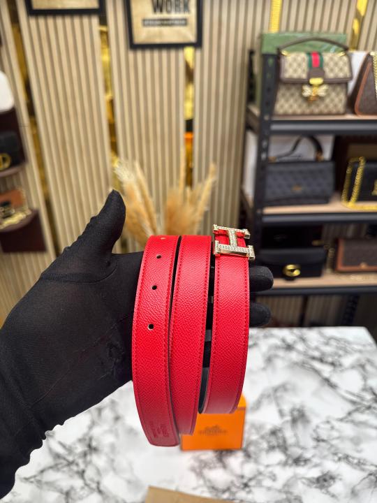 HERMES PREMIUM BELT WITH OG BOX DUST BAG H49-RED
